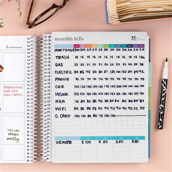 Once you have a cover you like you can snap it into any next planner you get so I can always have my personalized cover year to year. I also have the weekly and budget snap in I can use in any of my planners. They are wet erase marker friendly.